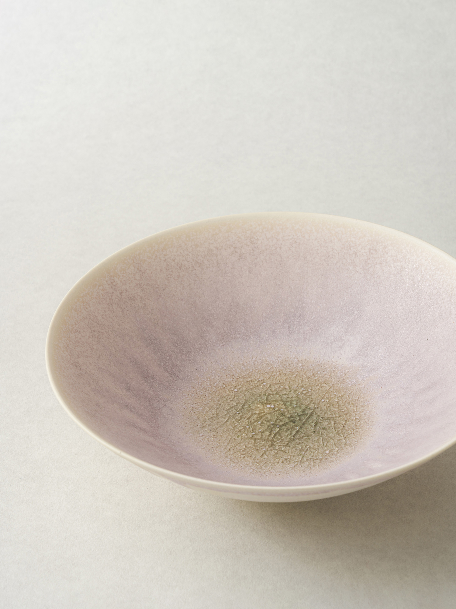 이유진 작가의 〈깊은 볼 - 보라 꽃잎〉 입니다. 신비로운 보라빛 꽃잎을 닮은 유약이 매력적인 접시입니다. 겨울이 지나 따뜻한 공기가 스며들면 차례로 꽃을 피우고 열매를 맺는 자연의 풍경을 떠올리며 작업했습니다. 적당한 깊이를 지녀 샐러드나 파스타 등 한 접시 요리를 담아내기에 좋습니다.