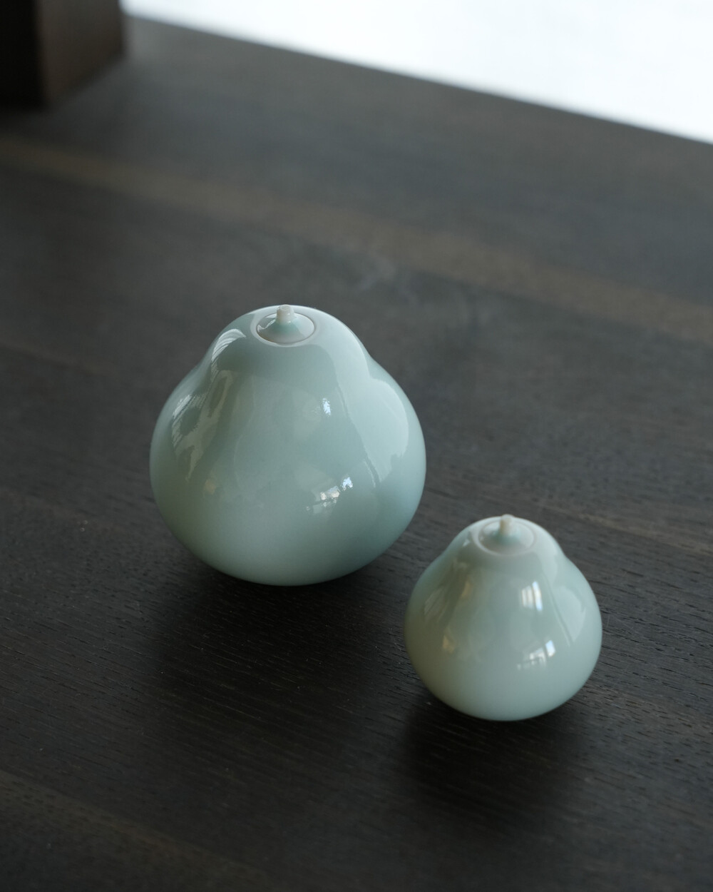 청빛이 도는 유약으로 청자 특유의 단아하고 맑은 색감을 담아낸 〈조롱박 호롱〉입니다. 호롱과 함께 파라핀 오일, 답비, 명주실이 기본 구성으로 제공되어, 바로 불을 밝혀 사용할 수 있습니다.